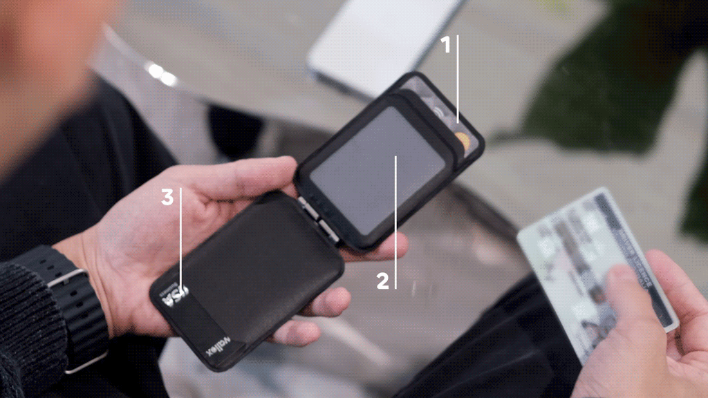 Versatile phone stand, magnetic 4-cards wallet, ID slot, plus a surface-mountable holder for hands-free recording or video playback. MagSafe Compatible.